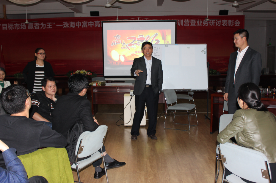 2015年12月27日,公司利用開設“珠海中富‘目標市場、贏者為王’中高層營銷技能提升特訓營”的機會,再次在支持中心舉辦了“2016年業(yè)務研討表彰會”,會議由人力資源部主持,董事長兼總經(jīng)理宋建明先生、總經(jīng)理特別助理吳逢彬先生、各職能部門總監(jiān)、各區(qū)總監(jiān)、各工廠廠長、各區(qū)財務總監(jiān)、優(yōu)秀員工代表、有獎征文獲獎者代表共70人參加了會議;本次會議旨在明確公司2016年業(yè)務目標、分享實現(xiàn)目標的推進方案、落實廠長對工廠業(yè)務的責任、樹標桿立榜樣、共商未來關(guān)鍵改善行動措施。會議主要有如下內(nèi)容: