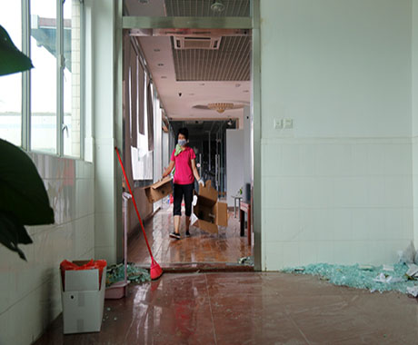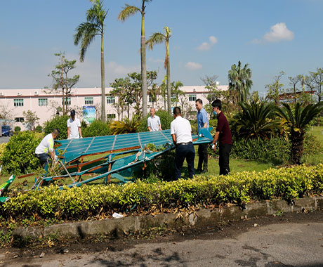 24日一早,劉錦鐘董事長、張海濱總經(jīng)理現(xiàn)場進行全方位巡查,根據(jù)公司受災情況,提出調(diào)動資源優(yōu)先修復辦公區(qū)域在臺風中破損的門窗、天花,以便第一時間恢復公司正常辦公生產(chǎn)環(huán)境。另一方面,配合保險公司人員清點公司受損資產(chǎn)以做好索賠工作。在公司領(lǐng)導的指導下,總經(jīng)辦及后勤工作人員從24日開始,緊張、高效而有序的開展各項災后修復,及應對27日“帕卡”臺風的準備工作。