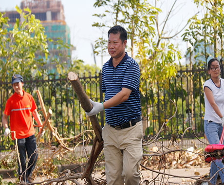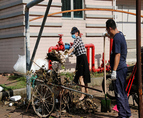 因2次臺風連續(xù)而猛烈的破壞,園區(qū)內(nèi)隨處可見倒臥的樹木及斷枝、被吹落的屋頂鐵皮、保溫棉垃圾。為盡快恢復園區(qū)的環(huán)境,29日在中共中富總支部的倡議下,由黨員、志愿者組成的搶險小分隊,頂著毒辣的太陽及高溫天氣,大家不怕臟、不怕累、手持砍刀將倒下的大樹鋸斷搬走,用掃把、鐵鏟將園區(qū)內(nèi)吹倒的樹桿、鐵皮、玻璃等垃圾雜物一 一清理干凈。在清理現(xiàn)場,公司領(lǐng)導張海濱總經(jīng)理親臨現(xiàn)場參加并指導。在熱火朝天的現(xiàn)場,不論是辦公室人員還是車間人員,不管是男同胞還是女同胞,均不分彼此,全力而為,隔著屏幕都能感覺到大家滿滿的正能量。無情的臺風雖然破壞了美麗的家園,卻也讓我們再次看到了一個個愿意奉獻、不怕辛苦的中富人。